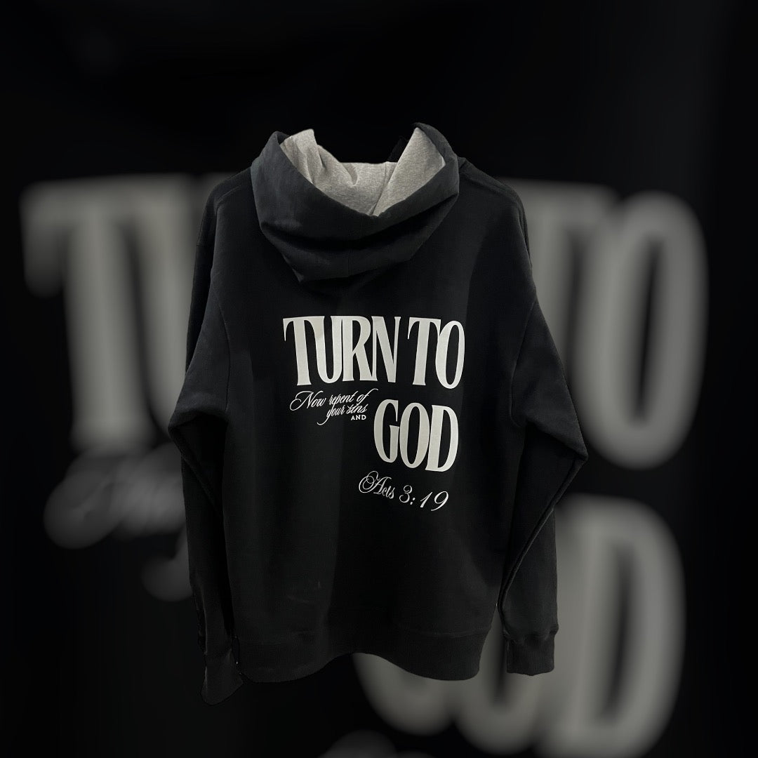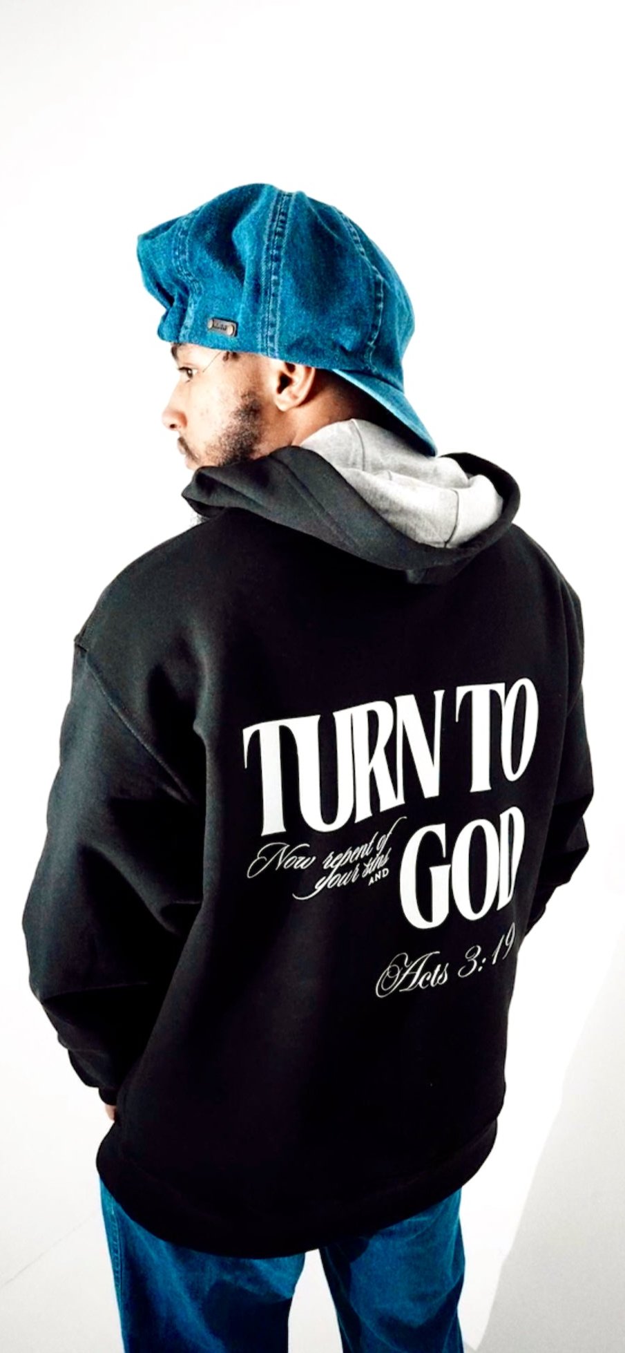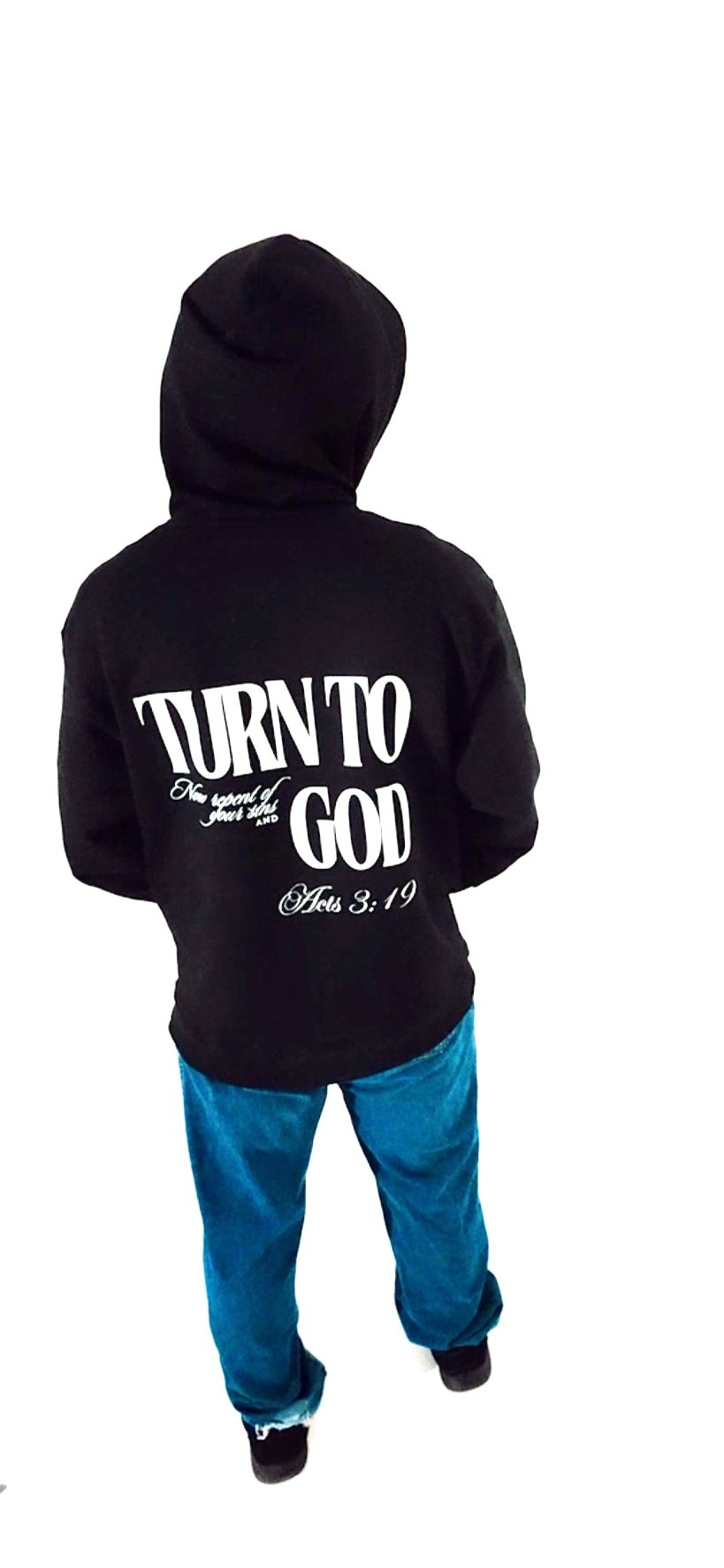 Turn To God - Hooded sweatshirt. Inspired from the Book of Acts where Jesus commands us to repent of our sins and turn to God (Acts 3:19)
